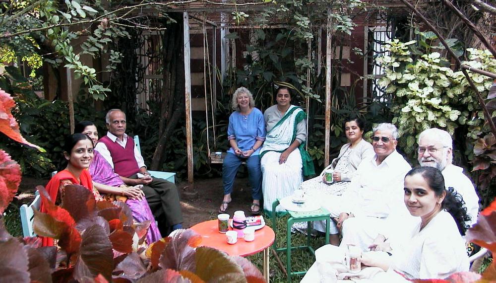 in the garden (Joy; Anjali; Purawa; Baba; Eric; Va