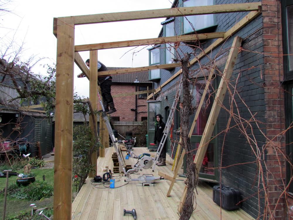 255 - Verandah construction - frame for the roof - Keith and Cameron