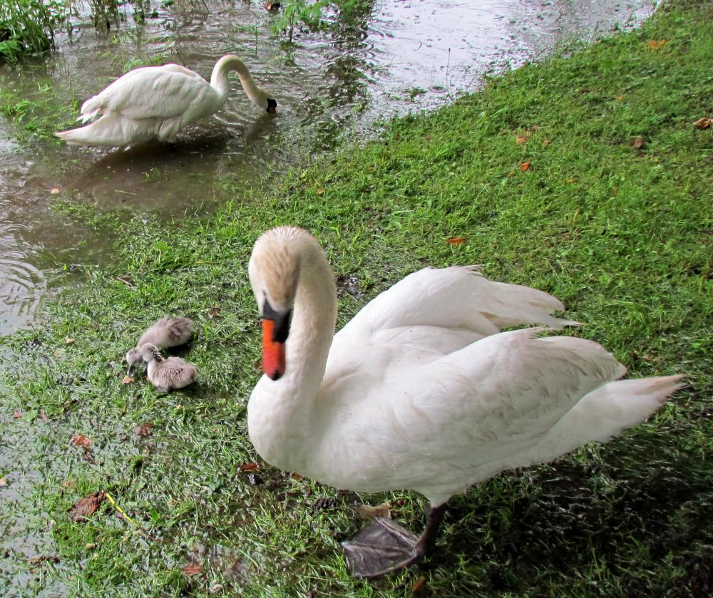119 - Highfields Lake - swans with three cygnets still around