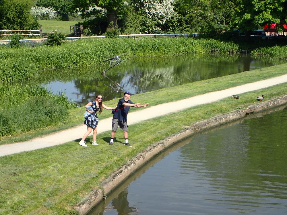 429 - Hatton Locks lunch - Jenna pushing Eric in ...
