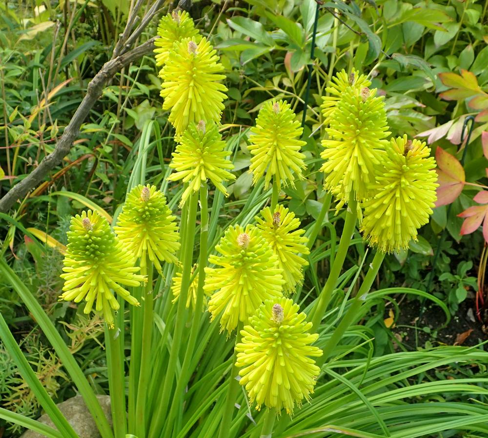 45 - Autumn garden flowers - kniphofia limelight