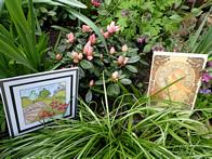 182 : Garden - Mothering Sunday cards and azalea and recipient Joy