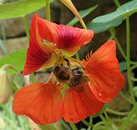 35 : Garden flowers - nasturtium with bee