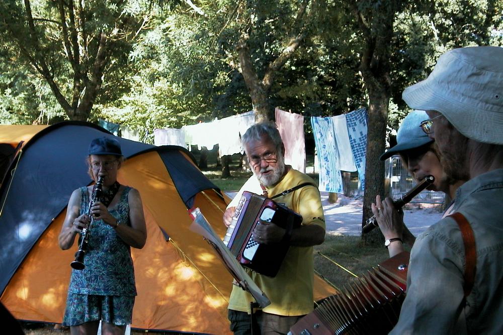 Helen Eric Sylvia Simon at the campsite