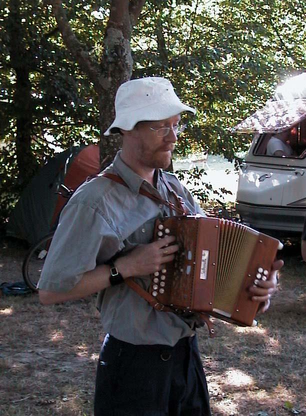 Simon on melodeon at the campsite
