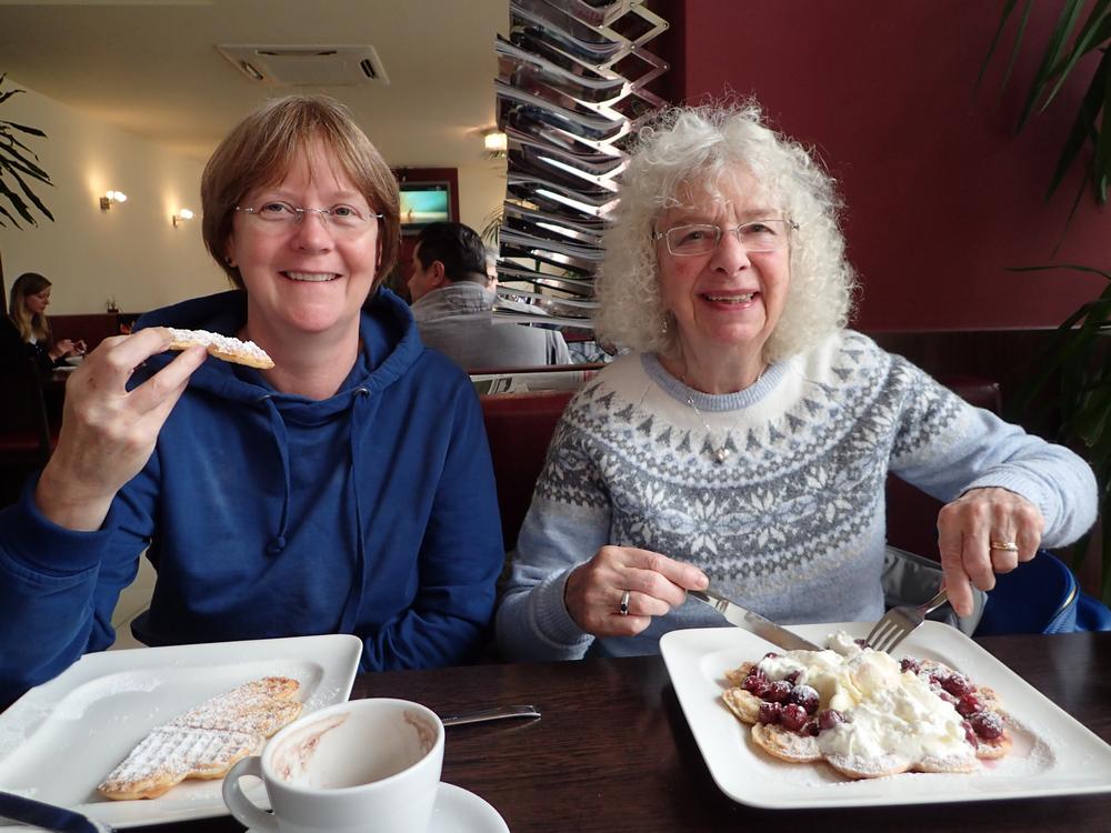 10 - Snack at Epinal Place - Karen, Joy and waffles