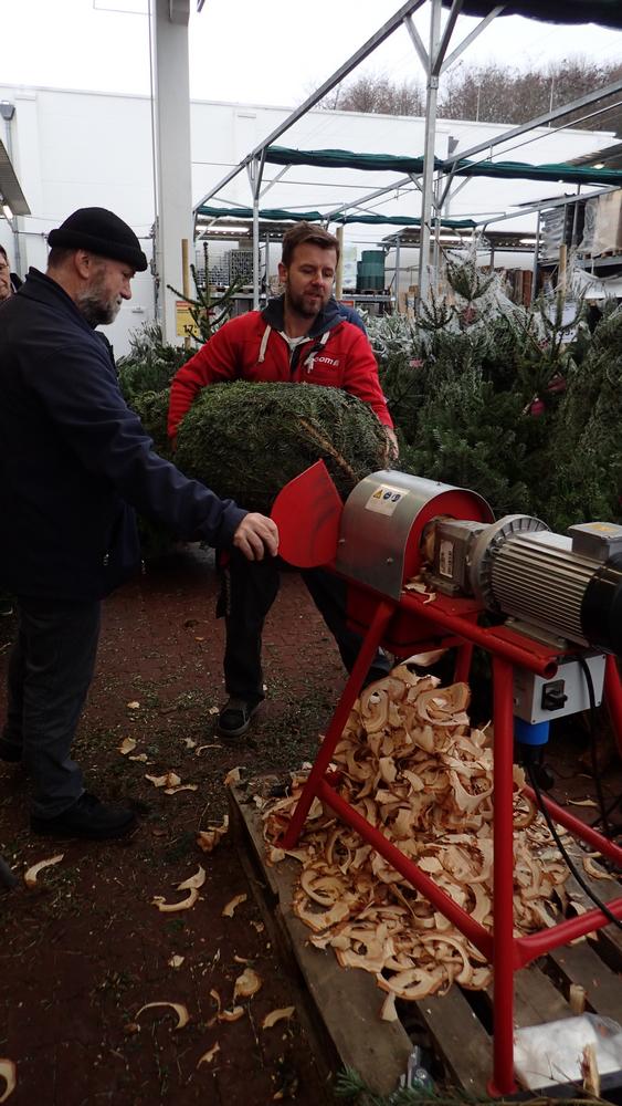 Choosing a Christmas tree at Toons - the trunk trimmer