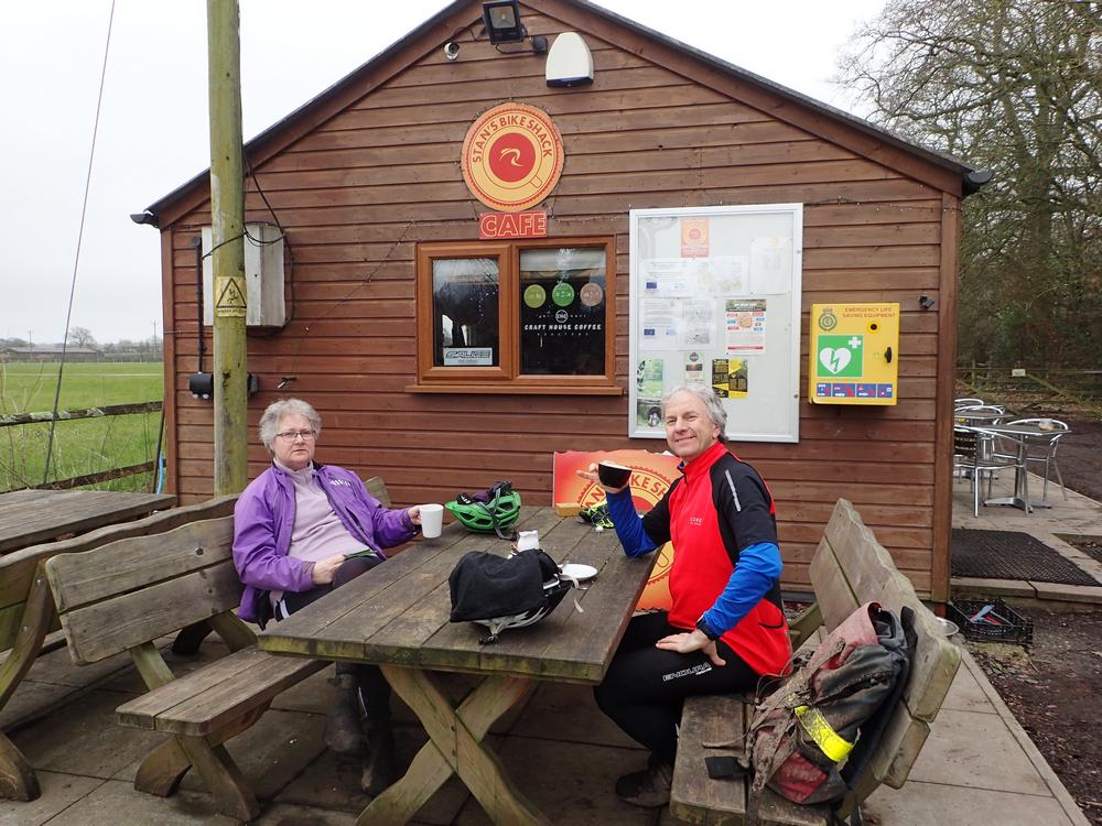 48 - Cycling the Downs Link - Drinks stop Jean Rory